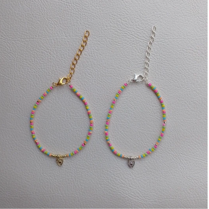 Hartjes kralen armbandjes. Beschikbaar in het goud en zilver. €2,50 euro per stuk.