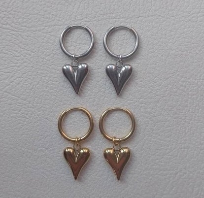 Stainless steel hartjes oorbellen. €7,50 euro per paar. De oorbellen zijn van stainless steel, dus je kan er mee douchen en zwemmen. Beschikbaar in goud & zilver.