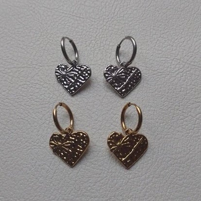 Stainless steel hartjes oorbellen. Beschikbaar in het zilver en goud. €7,50 euro per paar! De oorbellen zijn van stainless steel, dus je kan ermee douchen en zwemmen.