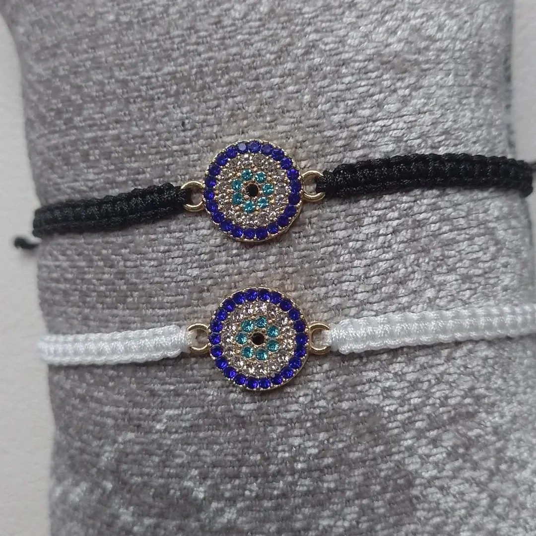 Geknoopte lucky eye armbandjes. De armbandjes zijn voorzien van een schuifknoop. €3,50 euro per stuk.