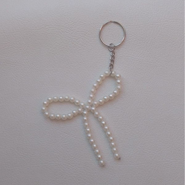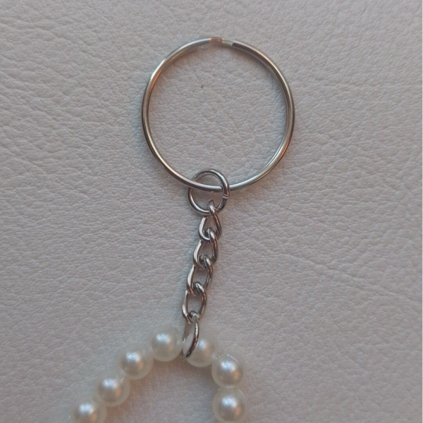 Strikjes parel sleutelhanger. €3,- euro per stuk.