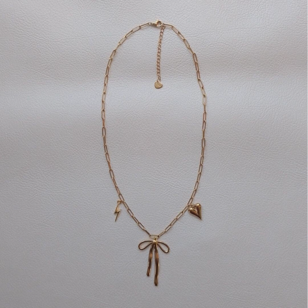 Leuke stainless steel bedel ketting. Je kan ermee zwemmen en douchen. De lengte van de ketting is 45 cm + 5 cm verlengstukje. Ook beschikbaar in het zilver! €12,50 per stuk.