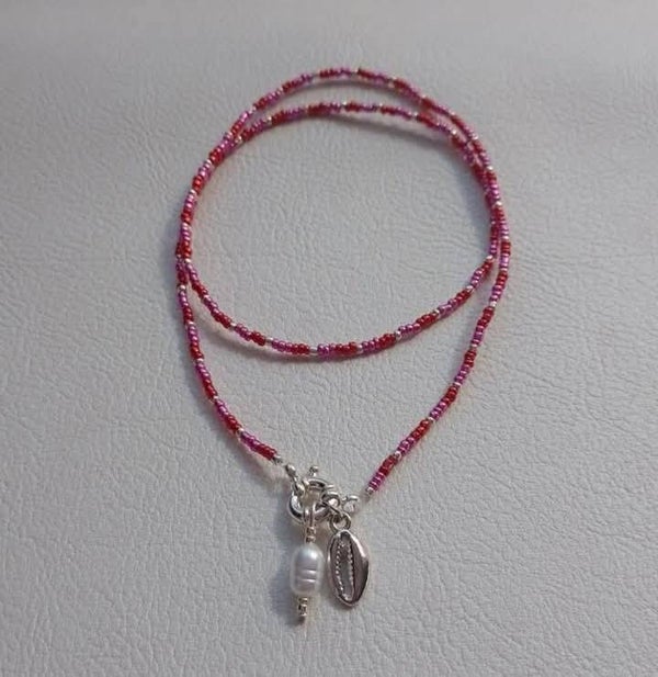 Rvs kralen schelpen/zoetwaterparel ketting. Deze te leuke zomerse ketting is van roestvrijstaal, je kunt hierdoor dus met de ketting zwemmen en douchen!! De ketting is €4,50 euro per stuk. Hij is ook beschikbaar in het goud.