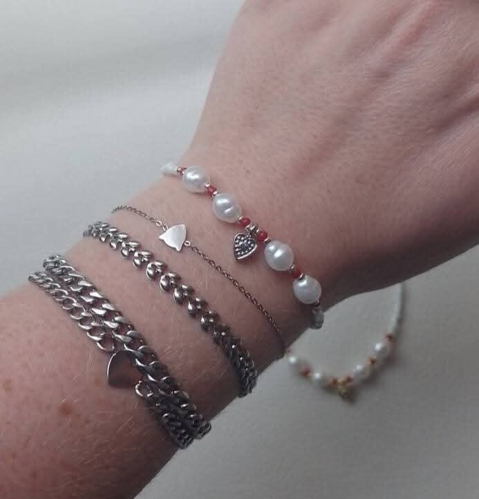 Deze te gekke zoetwaterparel kralen hartjes armbanden, kun je nu scoren voor maar: €2,50 euro per stuk. Je kan kiezen uit zilver en goud. Eventueel ook mogelijk met andere kleuren kralen.